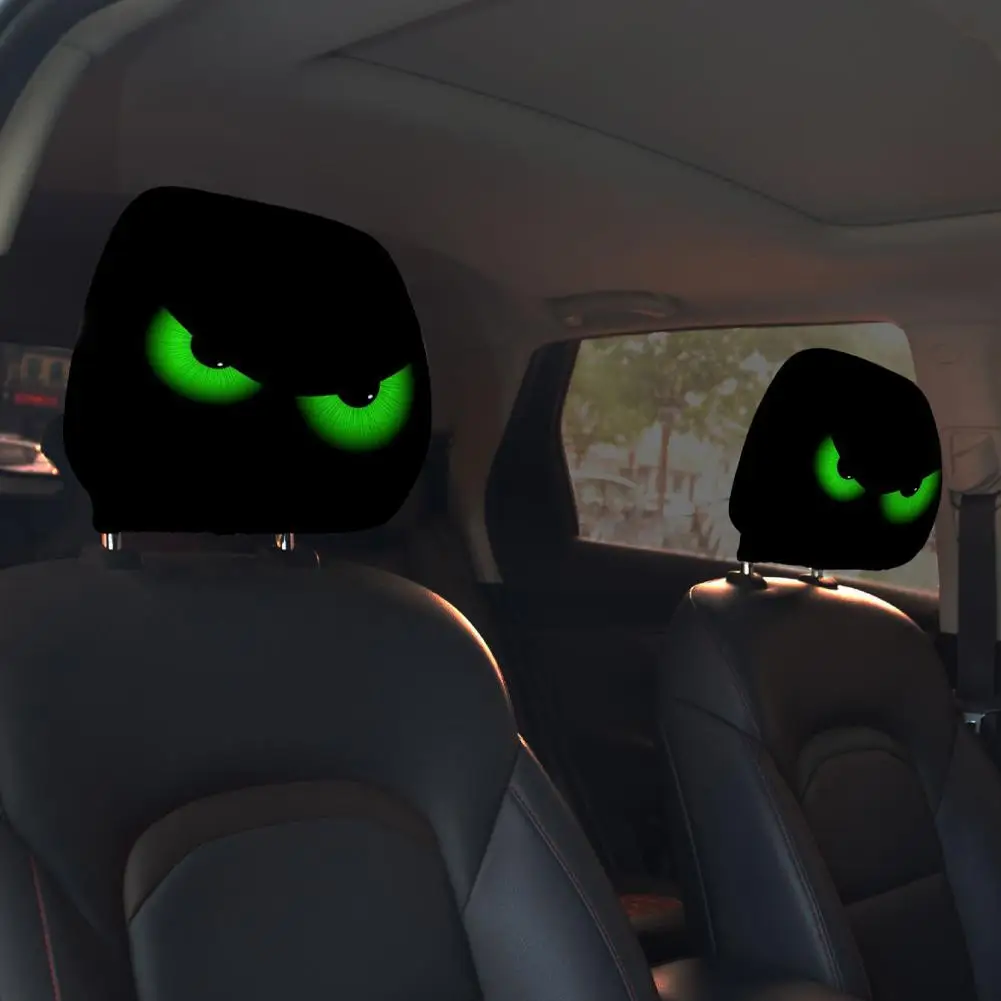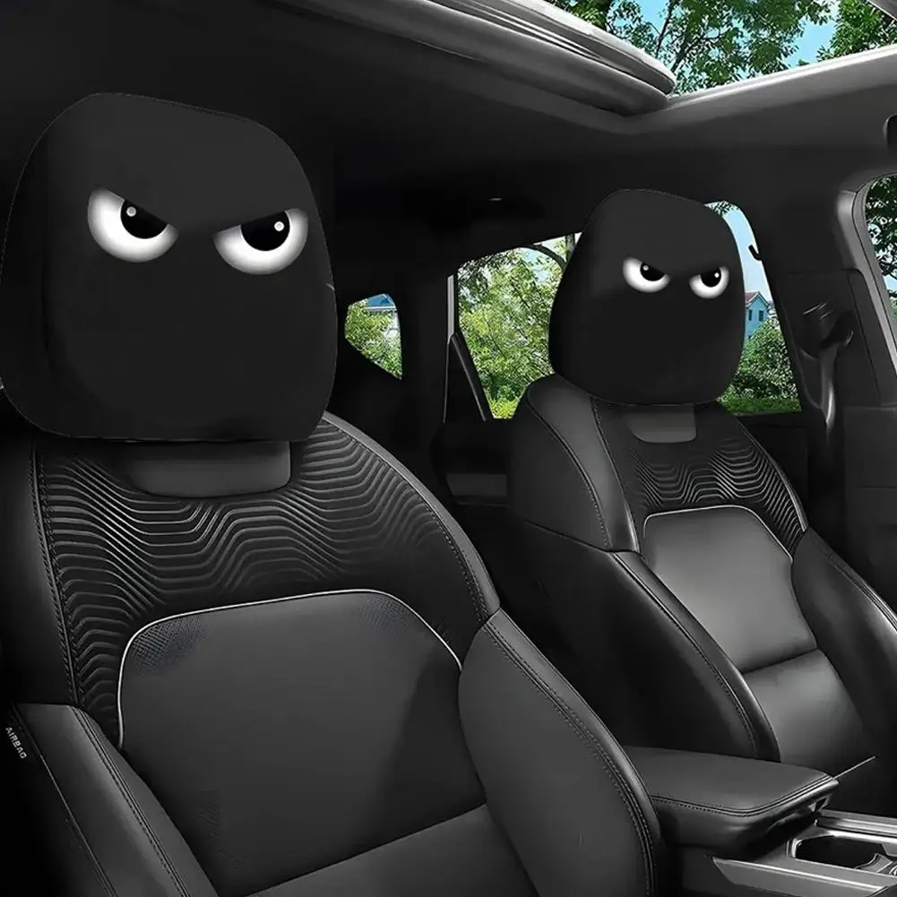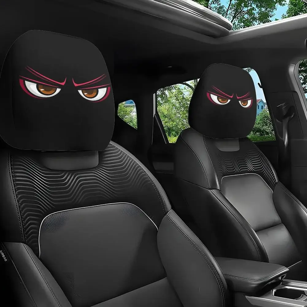2PCS Funny Car Headrest Cover Decor Big-eyed Cartoon Print Headrest Cover Creative Car Seat Headcover Gift For Car Lover